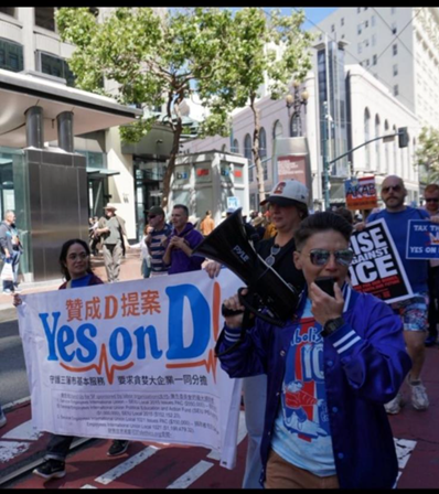 IFPTE Local 21 President, Bianca Polovina, leading Local 21 members during Saturday’s No Kings rally/march in San Francisco